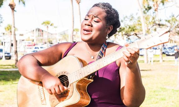 A self-taught musician, Gabby Samuels was born and raised in St. Augustine. She is now an elementary school teacher in the Ancient City and frequently uses music to engage her class.