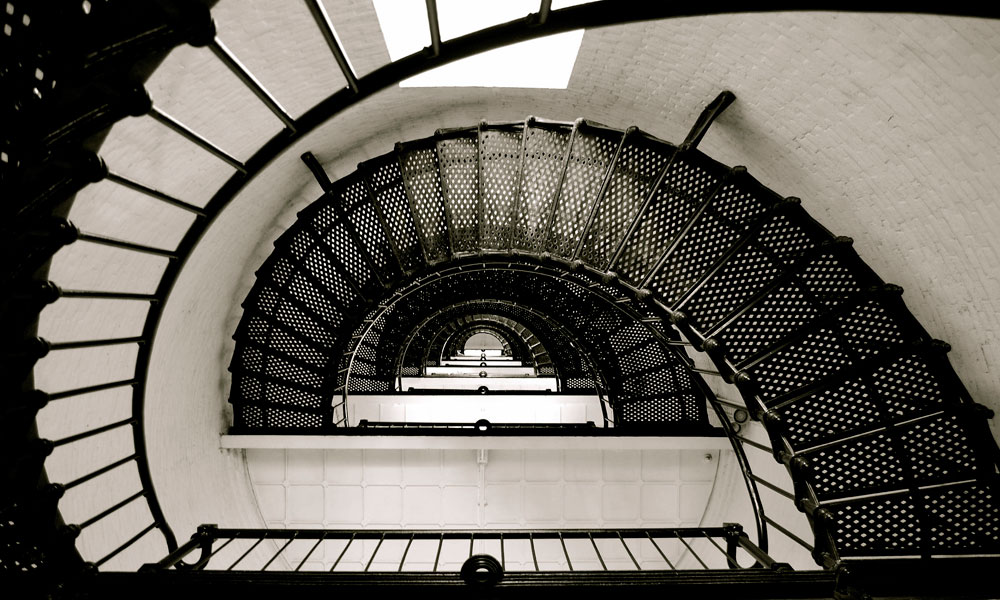 The spiral staircase in the Lighthouse Museum.