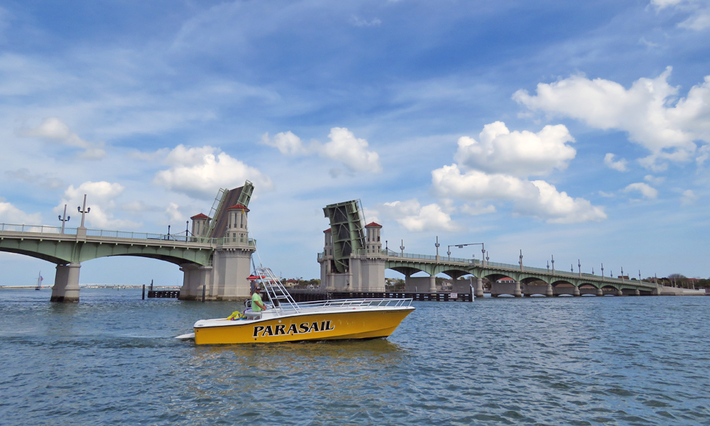 Visitors can take in St. Augustine's sights from great heights with St. Augustine Parasail. Tours are available at 500 or 1000 feet above the city's main waterways, offering guests the exciting chance to glide above the city for an unforgettable parasailing experience.